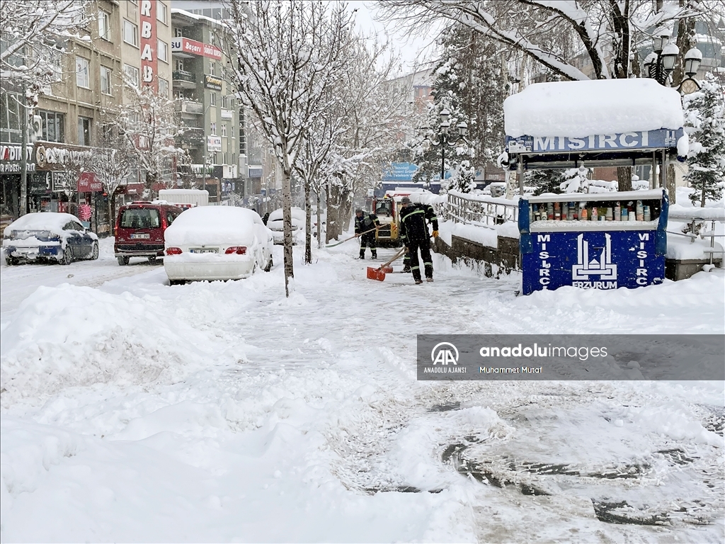Belediye ekipleri de karla kaplı cadde ve sokaklarda çalışma başlattı.