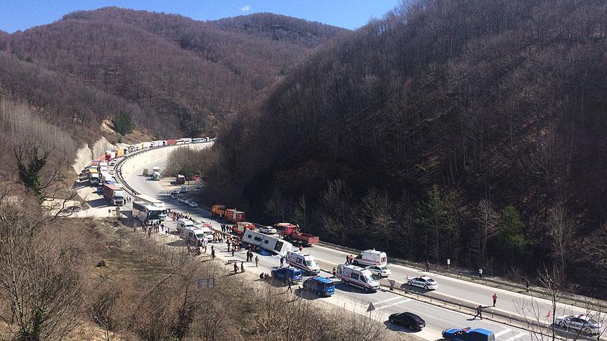 Bursa-Ankara karayolunda otobüsün devrilmesi sonucu 7 kişi yaşamını yitirdi, 39 kişi yaralandı.