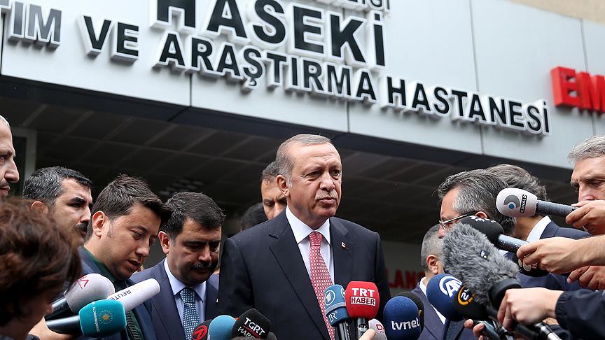 Haseki Eğitim ve Araştırma Hastanesinde şu anda yoğun bakımda 2 hasta bulunduğunu ve ameliyatlarının devam ettiğini belirten Erdoğan, ziyaret ettiği diğer hastaların durumlarının gayet iyi olduğunu, kontrol altında bulunduklarını söyledi.