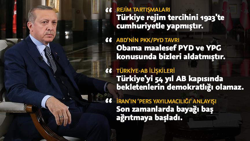 Cumhurbaşkanı Recep Tayyip Erdoğan, Katar Merkezli El-Cezire Televizyonu'na verdiği mülakatta pazar günü yapılan halk oylaması, bundan sonra atılacak adımlar, Avrupa'nın Türkiye'ye yönelik baskıları ve ABD Başkanı Donald Trump'la gerçekleştirdiği telefon görüşmesine ilişkin değerlendirmelerde bulundu.