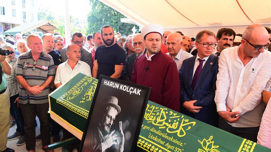 Tedavi gördüğü hastanede 62 yaşında hayatını kaybeden sanatçı Harun Kolçak, Bursa'nın Gemlik ilçesinde son yolculuğuna uğurlandı.