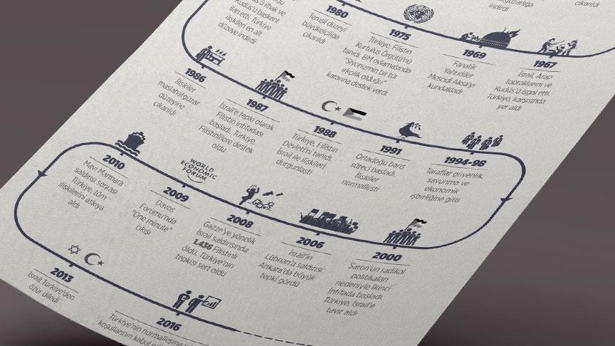 Türkiye’nin İsrail’le 1949’dan bu yana yürüttüğü ilişkilerde Ankara, insan hakları ile bölge halkları ve ülkelerinin egemenlik haklarına saygı gösterilmesinde ısrarcı oldu. İlişkilerdeki inişler ve çıkışlar büyük ölçüde İsrail’in Filistin’e yönelik eylemlerinden kaynaklandı.