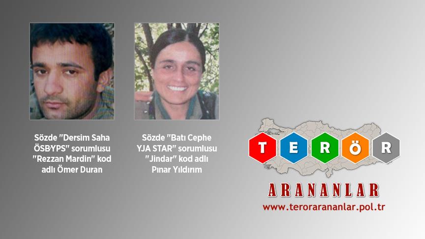İçişleri Bakanlığından yapılan yazılı açıklamada, Aranan Teröristler Listesinde turuncu kategoride bulunan, terör örgütü PKK'nın sözde Dersim Saha ÖSB/YPS sorumlusu "Rezzan Mardin" kod adlı Ömer Duran ve sözde Batı Cephe YJA STAR sorumlusu "Jindar" kod adlı Pınar Yıldırım'ın, Tunceli’de dün gerçekleştirilen operasyonda etkisiz hale getirildiği belirtildi.