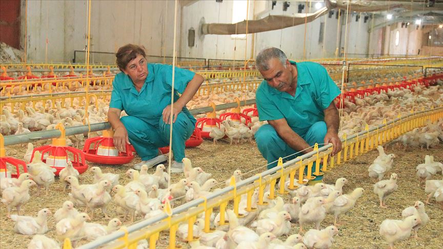 Tarım ve Kırsal Kalkınmayı Destekleme Kurumundan (TKDK) yüzde 50 hibe destek alarak mahalledeki 10 bin metrekare arazilerinde çiftlik kuran emekli çiftin yetiştirdiği tavukların eti, satış yapılan firmalar aracılığıyla yurt dışına da gönderiliyor.
