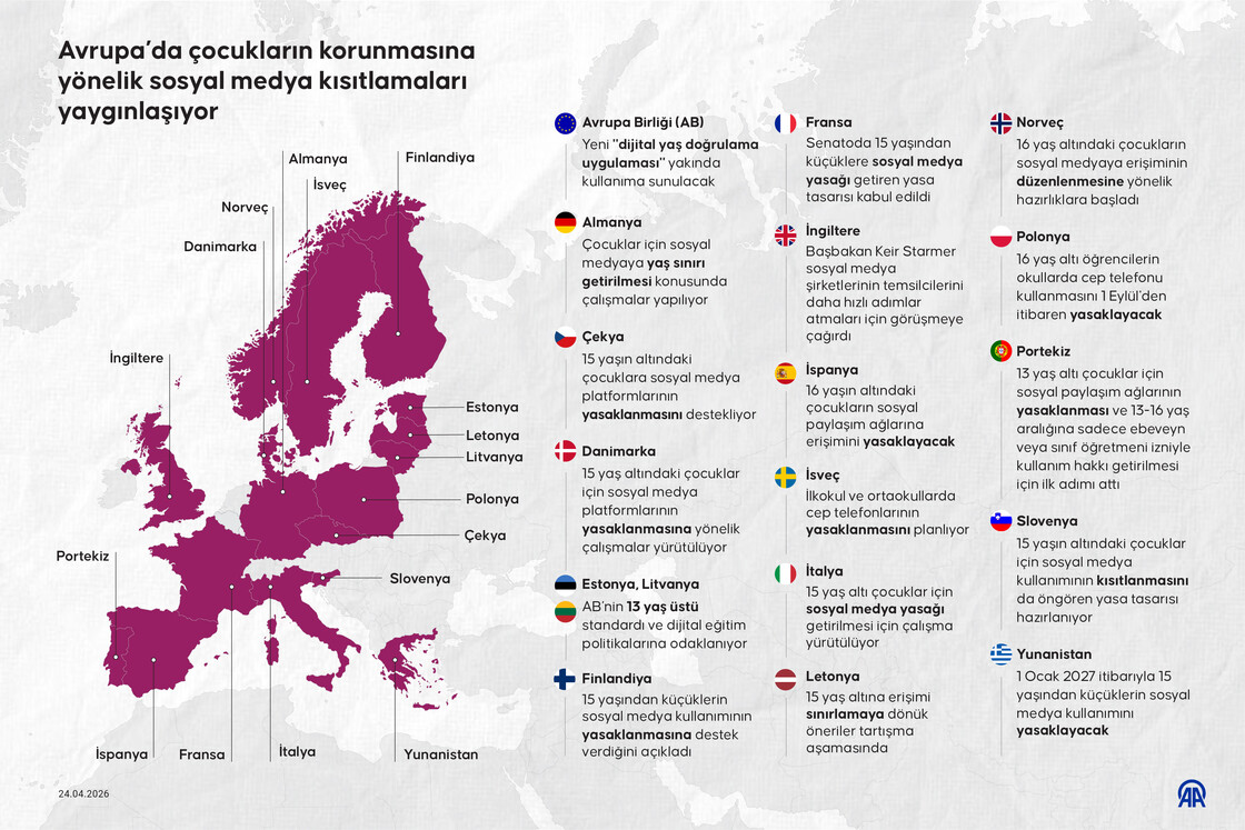 Avrupa’da çocukların korunmasına yönelik sosyal medya düzenlemeleri gittikçe yaygınlaşıyor
