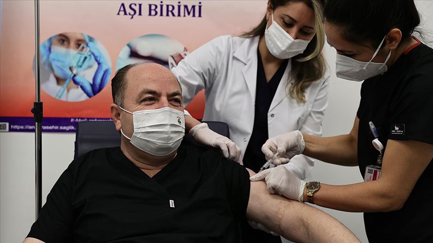 Çinli Sinovac firmasınca üretilen ve Türkiye'de de uygulanmaya başlanan CoronaVac aşısının ilk dozunu, Ankara Şehir Hastanesi'nde oluşturulan aşı uygulama odasında yaptıran Çelebi, tedbir amacıyla 15 dakika beklemesinin ardından AA muhabirine açıklamada bulundu.