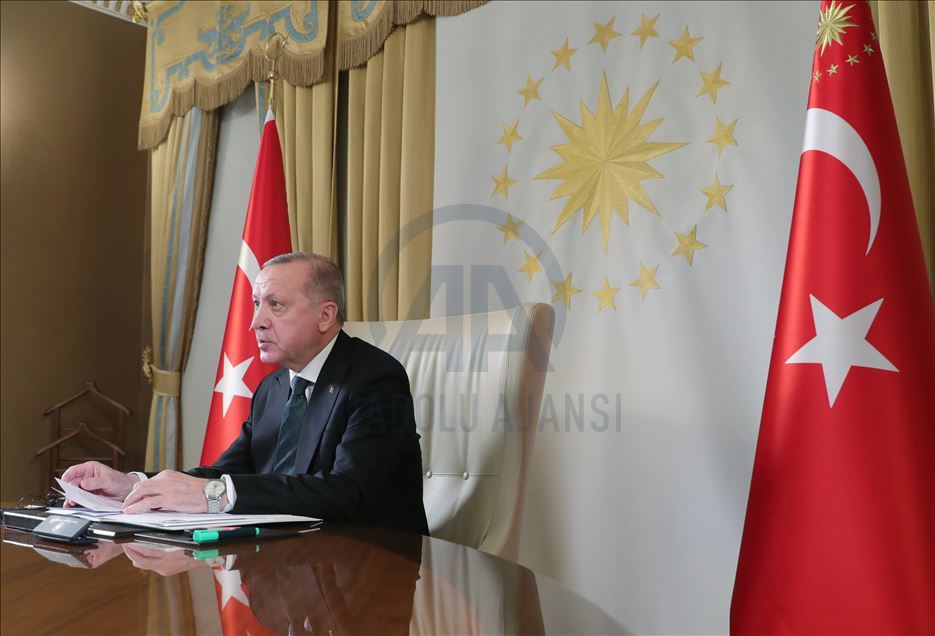 Türkiye Cumhurbaşkanı Recep Tayyip Erdoğan, Fransa Cumhurbaşkanı Emmanuel Macron, Almanya Başbakanı Angela Merkel ve İngiltere Başbakanı Boris Johnson'la video konferans görüşmesi gerçekleştirdi.