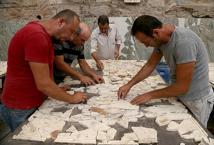 Türkiye'nin en büyük arkeoloji projesinin yürütüldüğü Efes Antik Kenti içinde tarihe ışık tutan kazıların yanında ilginç restorasyon çalışmaları da yapılıyor. Antik Kent içinde ayrı bir girişten ulaşılabilen Yamaç Evler bölümünü ziyaret eden binlerce insan, büyük masaların üzerine yayılmış küçük mermer parçalarını birleştirmeye çalışan insanları şaşkınlıkla izliyor.