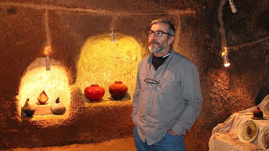 Türkiye'nin önemli turistik bölgelerinden Kapadokya'nın el sanatları merkezi konumundaki Avanos'ta bir girişimci, satın aldığı 5 katlı kaya oyma evin ahır olarak kullanılan bölümünü, çömlek ve seramik eserlerin sergilendiği sanat galerisine dönüştürdü.