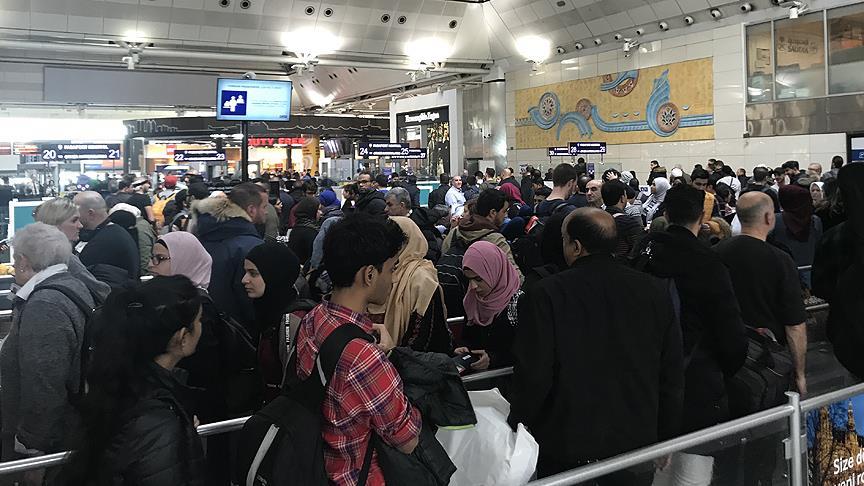 Yolcuların gelişlerinin öğleden itibaren daha da arttığı havalimanında, kontuarlarda ve pasaport kontrollerinde zaman zaman yoğunluk oluştu.