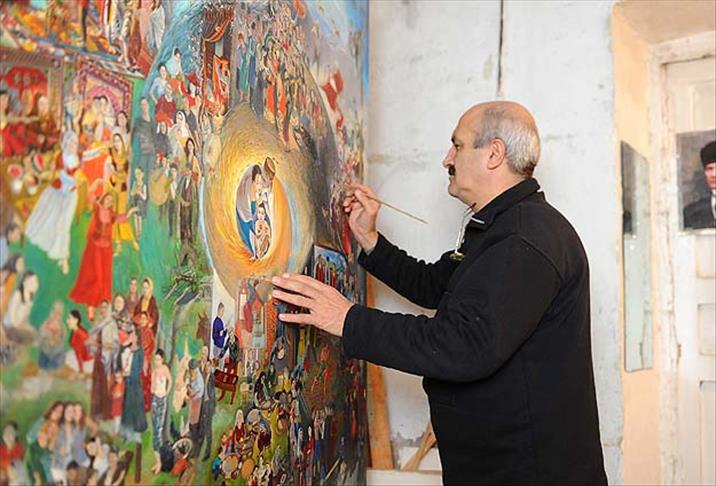 Nişan, gelin evinin donatılması, kına, düğün ziyafeti, gelinin baba evinden götürülmesi, gerdek gecesi ve düğün merasiminin diğer adetleri gibi sahneleri gelişim sırasına göre tablosuna yerleştiren ressam, bunları bir sahnede birleştirmenin yolu üzerinde ise 7-8 yıl düşündüğünü aktardı.