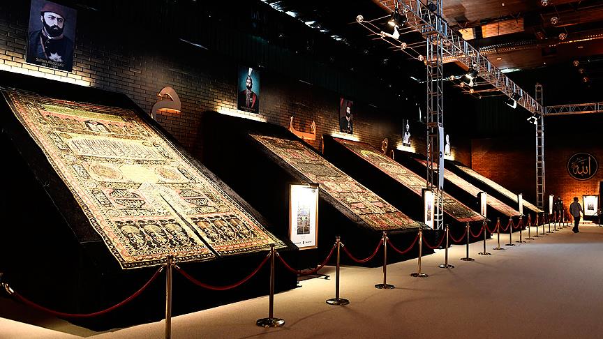 "Özellikle yıllarca Kabe'ye örtülük yapmış birçok eser var elimizde. Peygamber Efendimiz'in mezarında bulunan, üstüne örtülen eserlerimiz var burada. Bunlardan 14 tanesini burada sergileyeceğiz. Sergideki eserler, Kutsal Emanetler Müzesi'nde sergilenecek eserlerin bir kısmı. İçeride göreceğiniz Kabe kapısı örtülerinden biri, Kanuni Sultan Süleyman hazretlerinin, Kabe'nin kapısına zamanında yaptırdığı örtü. Yani tam anlamıyla bir servet, gördüğünüz zaman gerçekten hayran olacaksınız."
