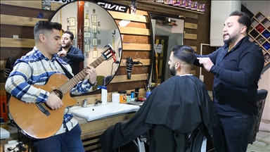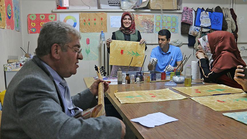 Siirt Üniversitesinde Sosyal Destek (SODES) Projesi kapsamında açılan ebru kursuna katılan öğrenciler, "canlı müzik" eşliğinde eğitim görüyor.