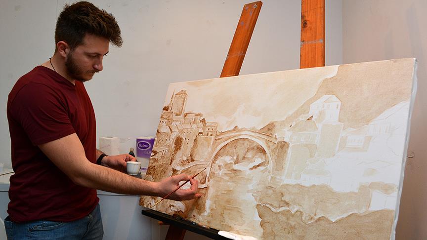 Mostar Köprüsü'nü Türk kahvesiyle çizdi