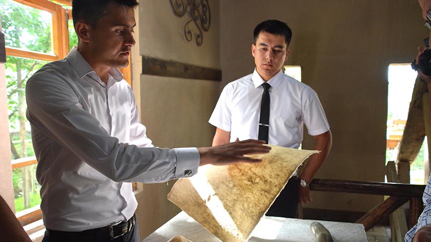 Semerkant'ın Konigil Mahallesi'ndeki kağıt atölyesinde Zarif Muhtarov ve ailesi, yüzyıllar öncesinin teknikleriyle kağıt üretim geleneğini yaşatıyor.