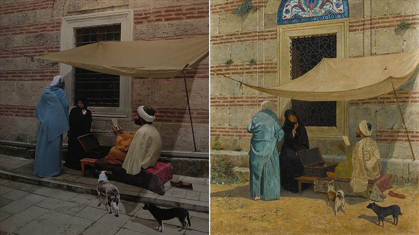 Ünlü oryantalist ressamların Bursa resimlerini, yapıldığı mekanlarda, dönemin kıyafetlerini giyen modellerle canlandırarak fotoğraflarını çeken Neslihan Sağır Çetin, projesini yurt dışına taşımayı hedefliyor. Fotoğraf sanatçısı Çetin, Osman Hamdi Bey'in "Kaplumbağa Terbiyecisi", Fransız ressam Jean Leon Gerome'nin "Prayer at the Sultans Tomb", İngiliz ressam John Frederick Lewis'in "Entrance to Tomb of Sultan Mehmet", Avusturyalı ressam Rudolf Ernst'in "The Beggar", Polonyalı ressam Stanislaw Chlebowski'nin "Turkish Lady Praying The Green Mosque" gibi daha pek çok ressamın Bursa konulu resimlerini karelerine yansıttı. Fotoğrafta ressam Osman Hamdi Bey'in "Kaplumbağa Terbiyecisi" konulu tablosu (Sağda) ve canlandırılan fotoğraf karesi (Solda) görülüyor. ( Ali Atmaca - Anadolu Ajansı )
