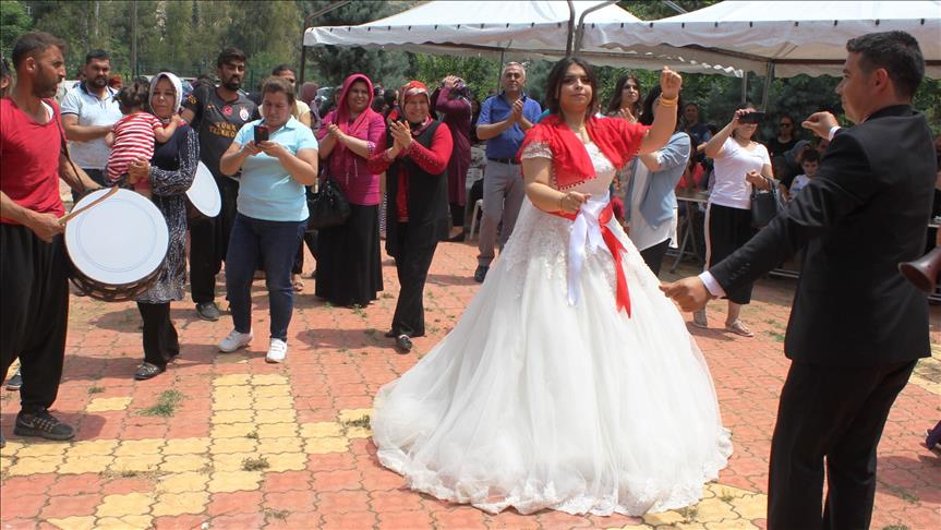 Şenlik sırasında Hemite köyünde düğünleri olan Ahmet ve Aybüke Keser çifti de mutluluklarını vatandaşlarla paylaşmak için düğün konvoyuyla şenlik alanına geldi.