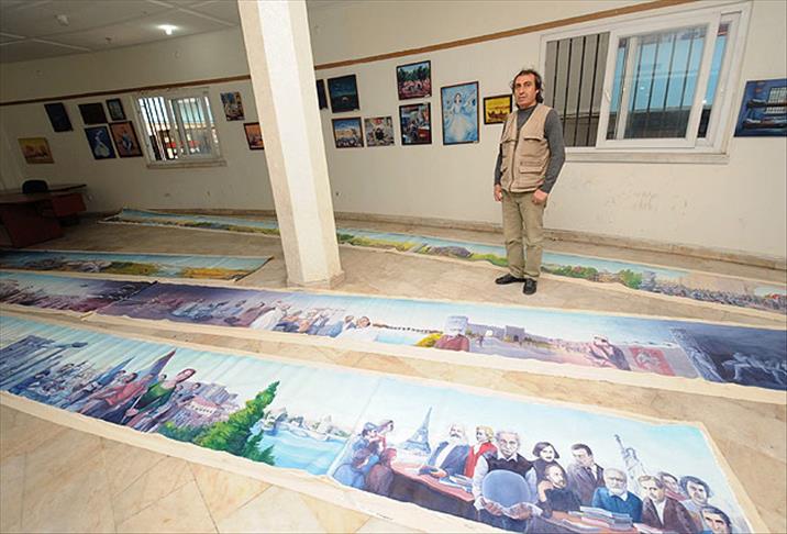 Mersin'de gerçekleştirilecek 2013 Akdeniz Oyunları sayesinde hayalini gerçekleştirmeye karar verdiğini, bu kapsamda 70 santimetre genişliğinde, 70 metre uzunluğunda tuval üzerine çalışmaya başladığını anlatan Bayırhan, aralarında Büyük Önder Atatürk'ün de yer aldığı insanlık tarihine yön veren siyasi isimlerle, filozofları ve tarihi mekanları resmettiğini söyledi.