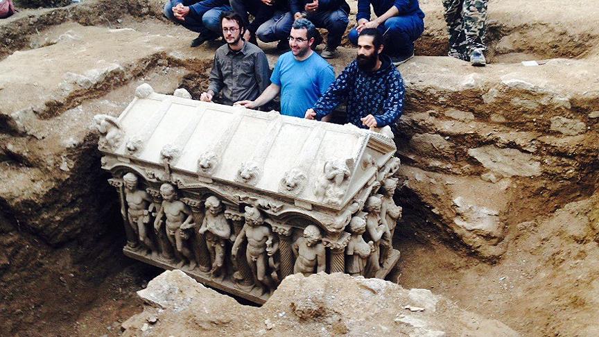 Değerli bir mermer taştan yapıldığı belirlenen lahitin kapak bölümünde, köşelerden uzanan nilüfer çiçeğinin içinde Eros kabartmaları ve aslan kafası figürleri yer alıyor. Bir kadın mezarını çevrelediği tahmin edilen lahitin yanlarında ise erkek ve kadın figürleri bulunuyor.