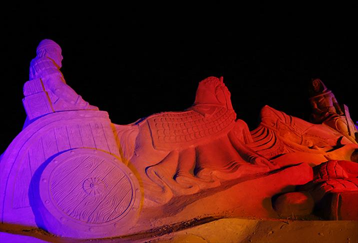 Global Design Art Works tarafından Lara Beach Park'ta 7 bin metrekarelik alanda düzenlenen festivalde 10 bin ton kum kullanılarak yapılan, aralarında Hun İmparatoru Attila, Kartacalı Hannibal, Viking Kralı Odin, Halid Bin Velid, Aslan Yürekli Richard ve Selahaddin Eyyubi gibi tarihte iz bırakmış kişilikler ve Kubbetüssahra ile Taç Mahal gibi tarihi yapıların da yer aldığı 100'den fazla kum heykel sergileniyor.