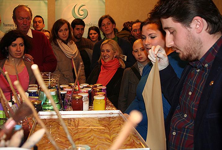 Macaristan’ın başkenti Budapeşte’de faaliyet gösteren Yunus Emre Türk Kültür Merkezi'nde düzenlenen ve Macarların büyük ilgi gösterdiği ''Geleneksel Türk el sanatları'' gününde Türk sanatçı Serhat Kula katılımcılara tezhip ve ebru sanatını uygulamalı olarak tanıttı.