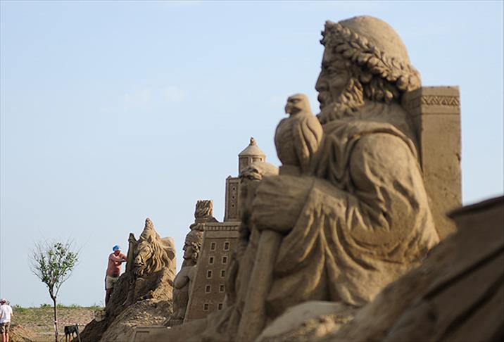 Festivaldeki eserlerin 15 bin metrekare alanda 32 günde yapıldıklarını bildiren Yılmaz, kumdan heykellerin 5 ila 18 metre arasında olduğunu kaydetti.