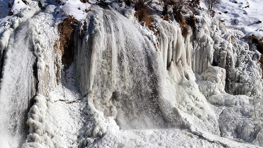 Van'ın Muradiye ilçesindeki Muradiye Şelalesi dondu.
