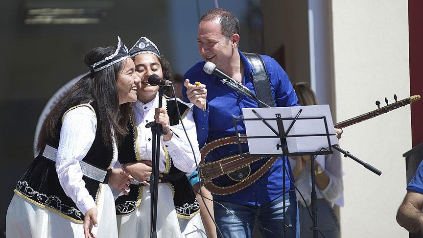Otistik çocuklarla çeşitli müzik aletleriyle "Kalenin bedenleri" ve "Leblebi koydum tasa" türkülerini seslendiren Ezgü'ye, yöresel kıyafetli iki çocuk da vokalistlik yaptı.