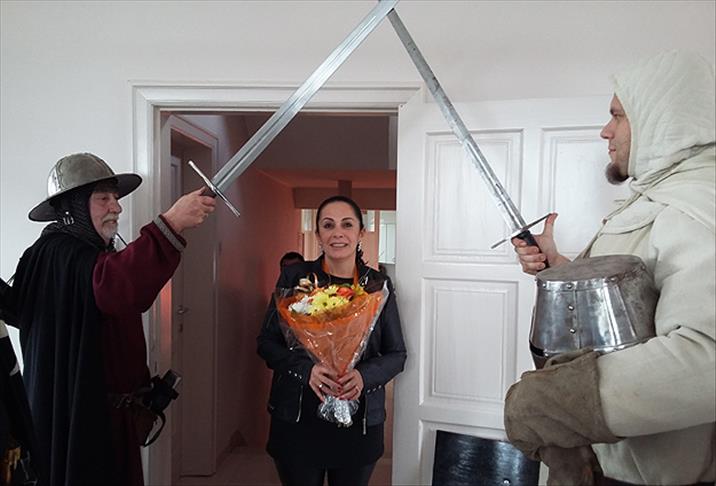 Ortaçağ geleneklerine göre düzenlenen törende şövalyelerin kılıçları altından geçirilen Derya Var'a, şövalyelik nişanı ve sertifikasını Avrupa Parlamentosu Senatörü Filip Dewinter takdim etti.