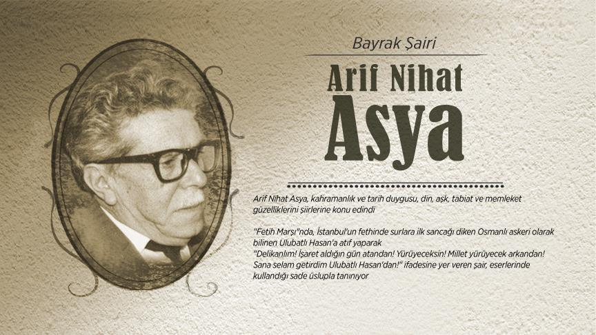 "Fetih Marşı", "Kalk Yiğitim", "Bayrak", "Dua" ve "Naat"ın da yer aldığı önemli şiirleriyle bilinen şair, öğretmen ve siyasetçi Arif Nihat Asya, vefatının 44. yılında çeşitli etkinliklerle anılıyor.
