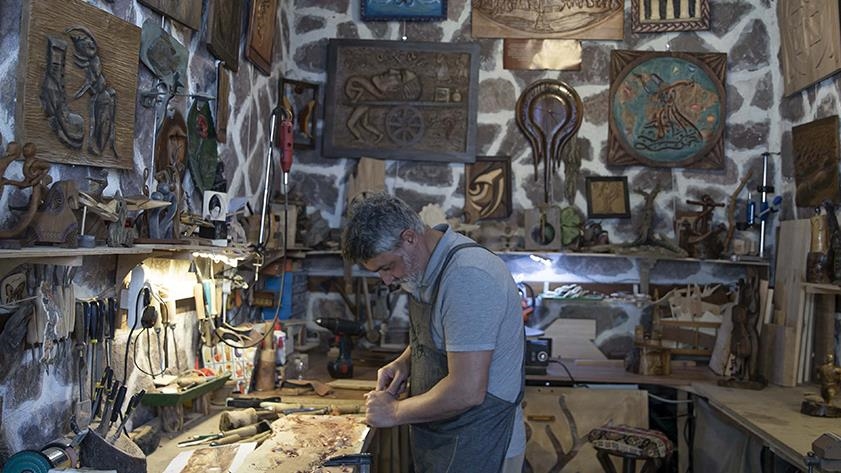 Ahşap oyma sanatçısı Bayram, Ulucanlar'da bulunan sanat sokağındaki atölyesinde, hayatına yön veren olayları sanatına yansıtıyor. Emekli hava astsubay olan Bayram, hobi olarak başladığı ahşap oymacılığının tutkuya dönüşme serüvenini AA muhabirine anlattı.
