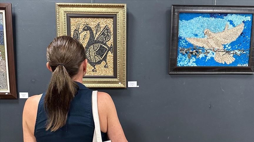 Sergide yer alan eserlerin her birinde en az 10 bin çakıl tanesi kullanıldığını kaydeden Sarı, bu çakıl tanelerinin kırılmadan ya da renklendirilmeden kullanıldığını belirtti.