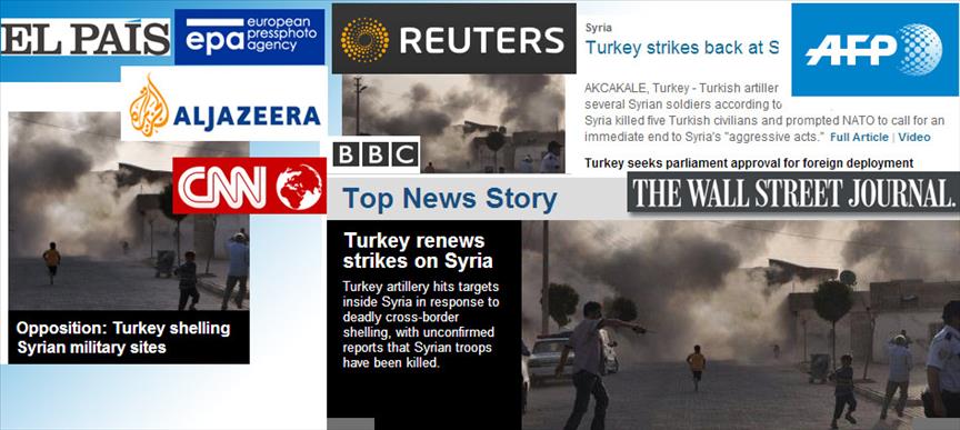 Suriye'den atılan top mermisinin Akçakale'ye düşmesi ve Türkiye'nin karşılık vermesi ABD medyasında geniş yer bulurken, haberlerde Anadolu Ajansı'nın fotoğrafları kullanıldı.