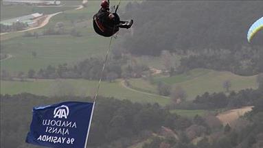 PTT 1. Lig'deki Balıkesirspor-Kayseri Erciyesspor maçında da konuk takımın futbolcuları, Anadolu Ajansı'nın 96. kuruluş yıl dönümünü kutlayan pankartla sahaya çıktı.
