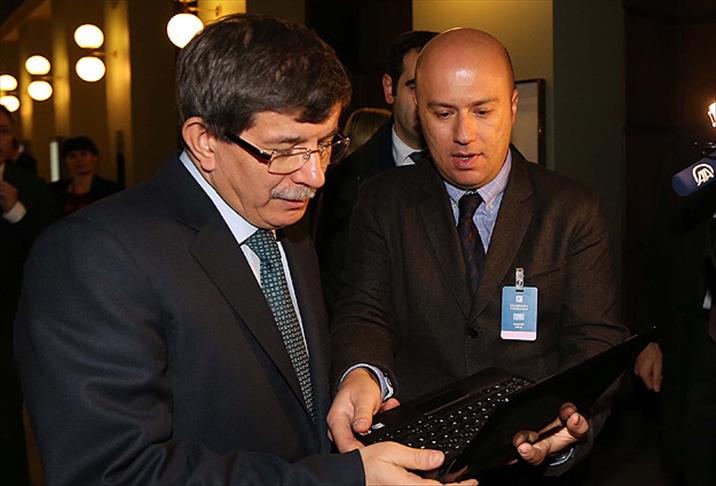 Resmi ziyaret için Finlandiya'da bulunan Dışişleri Bakanı Ahmet Davutoğlu, AA muhabirinin tanıttığı fotoğrafları inceledi.