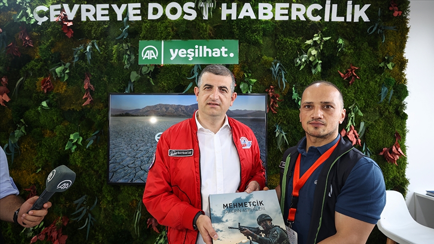 AA Proje Yönetim Ofisi Koordinatörü Oğuz Karakaş, standı ziyaret eden Bayraktar'a, AA'nın çalışmaları hakkında bilgi verdi, AA Yayınları'ndan "Mehmetçik Zaferin Askerleri" kitabını takdim etti.