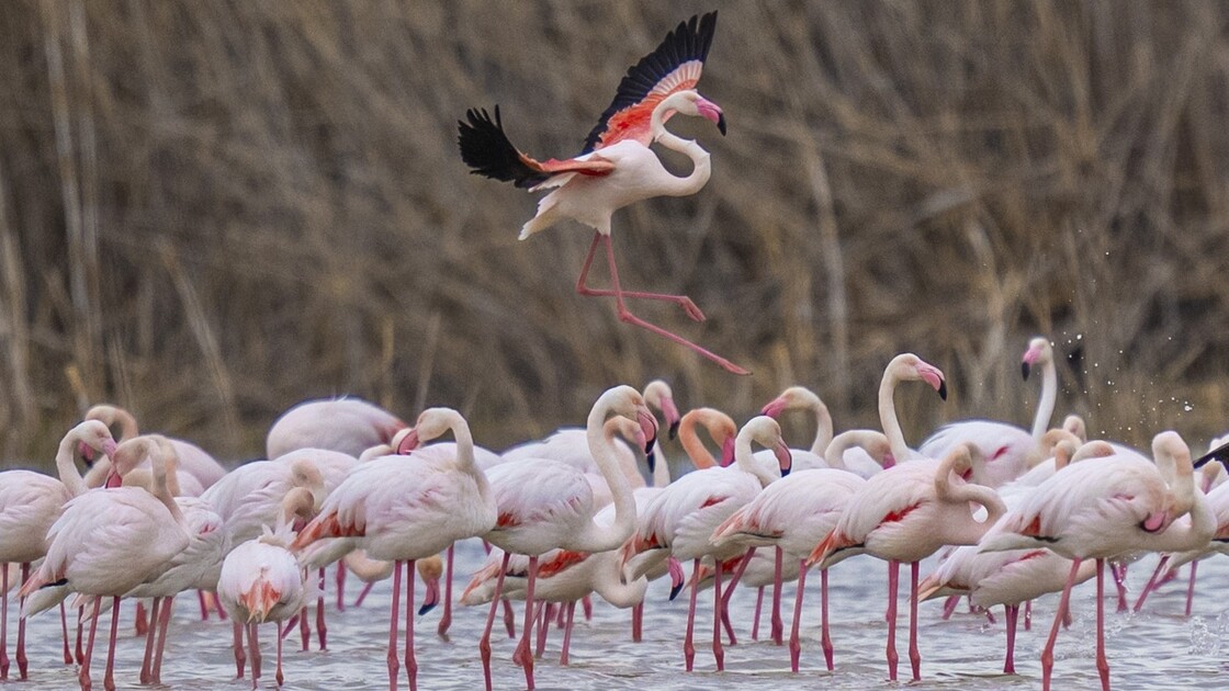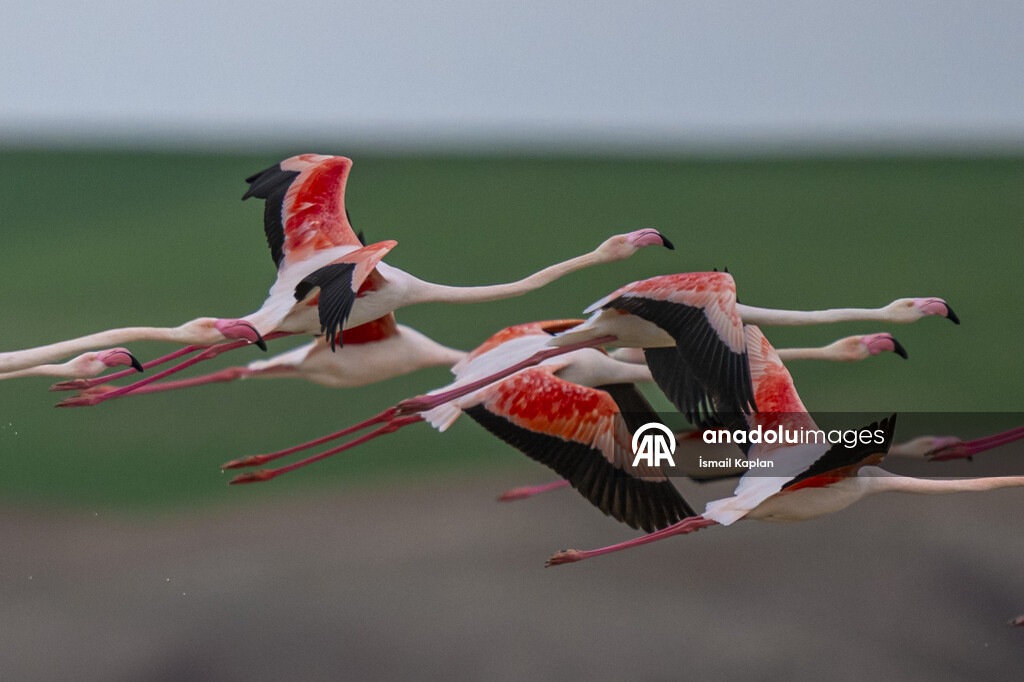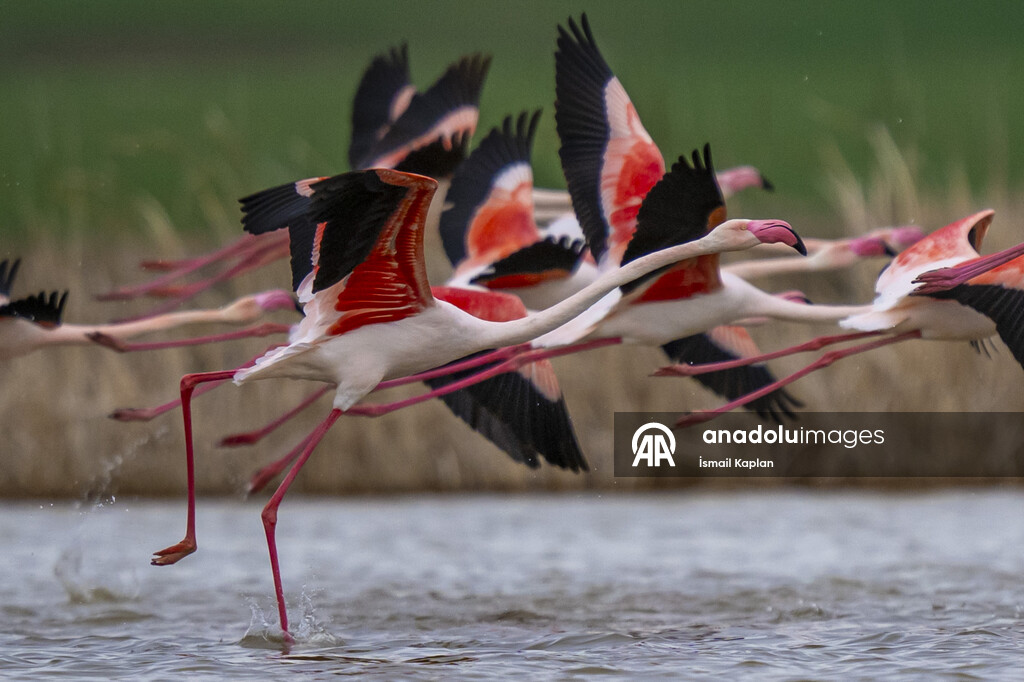 Ankara'nın Gölbaşı ilçesi Çayır deresi üzerindeki göletler farklı türden çok sayıda göçmen kuşa ev sahipliği yapıyor. Allı turna adıyla da bilinen flamingolar, göç yolculuklarına kısa bir mola vererek bölgeye renk katıyor.