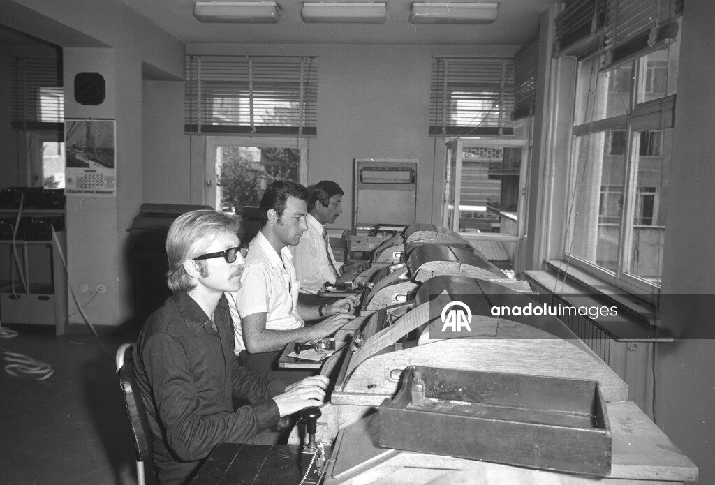 Anadolu Ajansı Genel Müdürlüğü Teleks Servisi çalışanları.