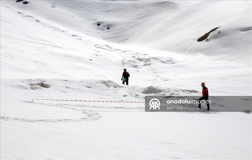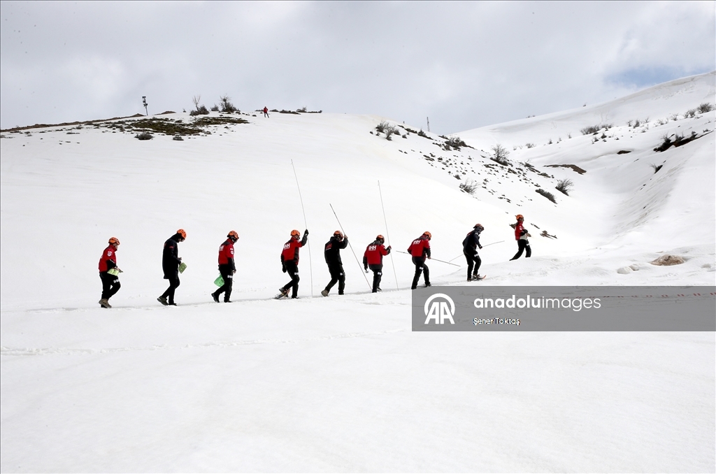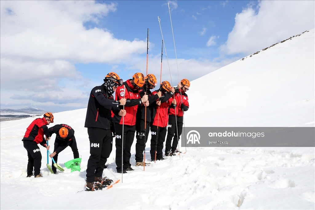 Gönüllü arama kurtarma ekibine çığ olaylarına müdahale için karda zorlu eğitim