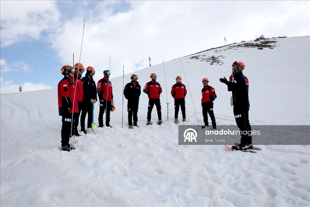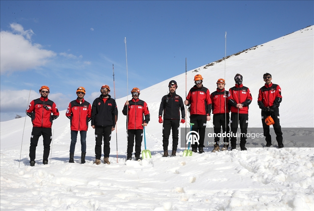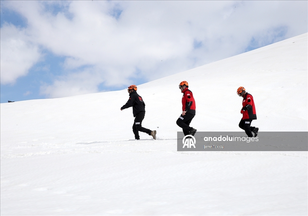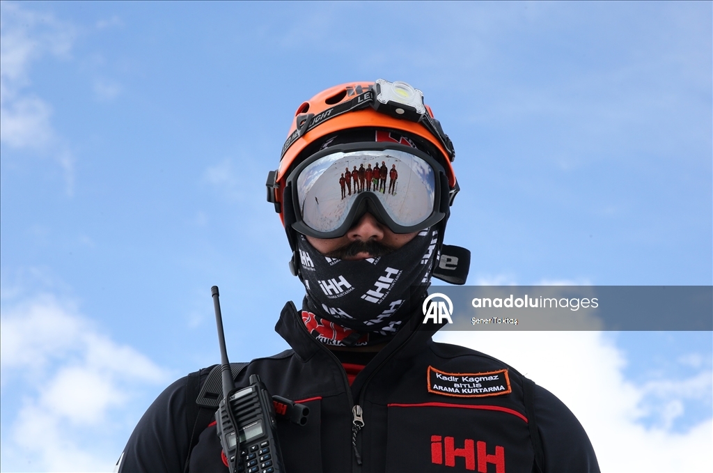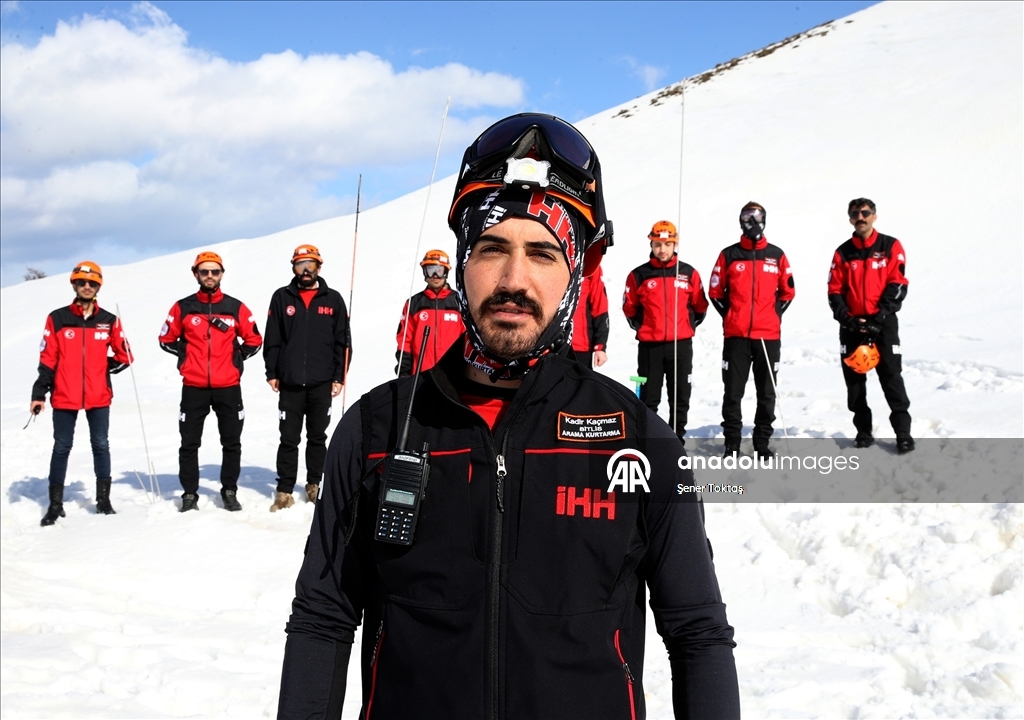 İnsan Hak ve Hürriyetleri (İHH) İnsani Yardım Vakfı Bitlis Şubesince gönüllülerden oluşturulan arama kurtarma ekibi, olası çığ olaylarına hızlı ve etkili müdahale için karda eğitim alıyor.