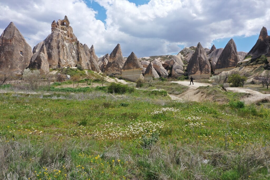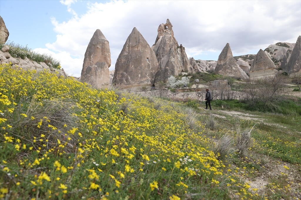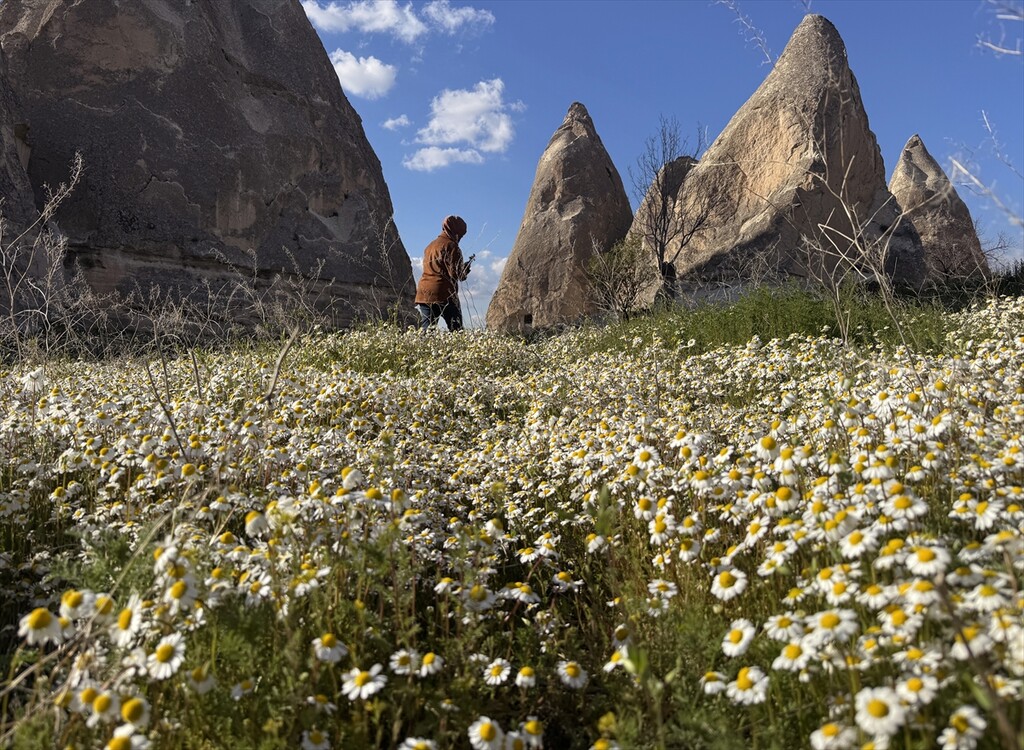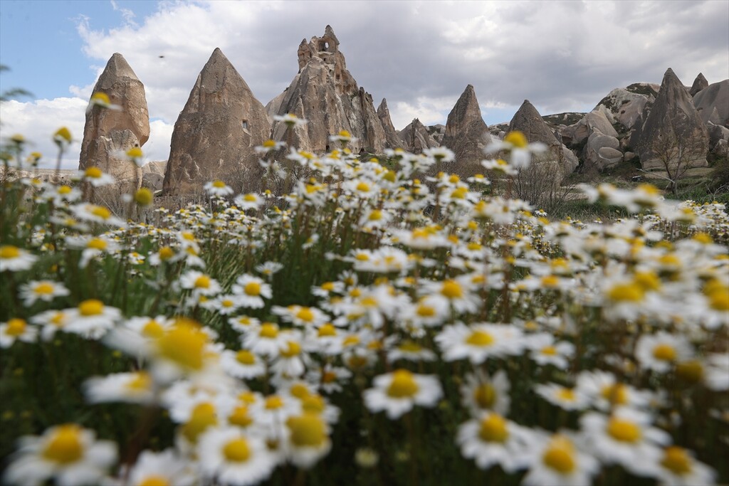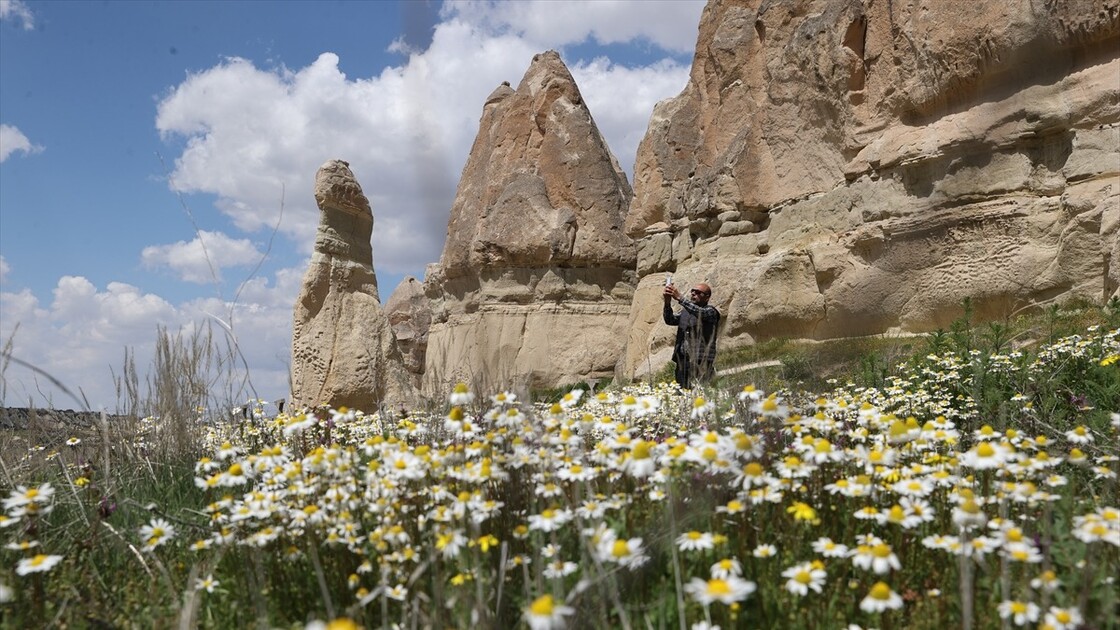 Kapadokya’da baharın gelişiyle peribacaları rengarenk çiçeklerle buluştu. UNESCO Dünya Mirası Listesi'ndeki Kapadokya'da, peribacaları ve doğal kaya oluşumlarıyla kaplı vadilerde açan yabani çiçekler, bölgenin manzarasına güzellik kattı.
