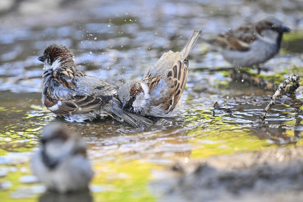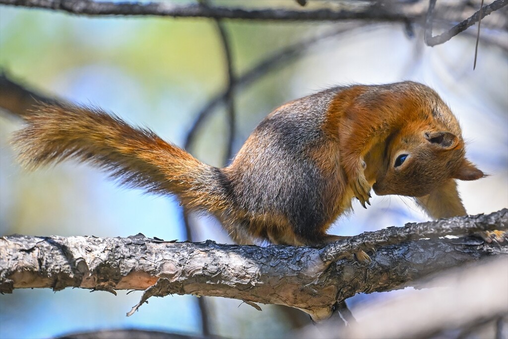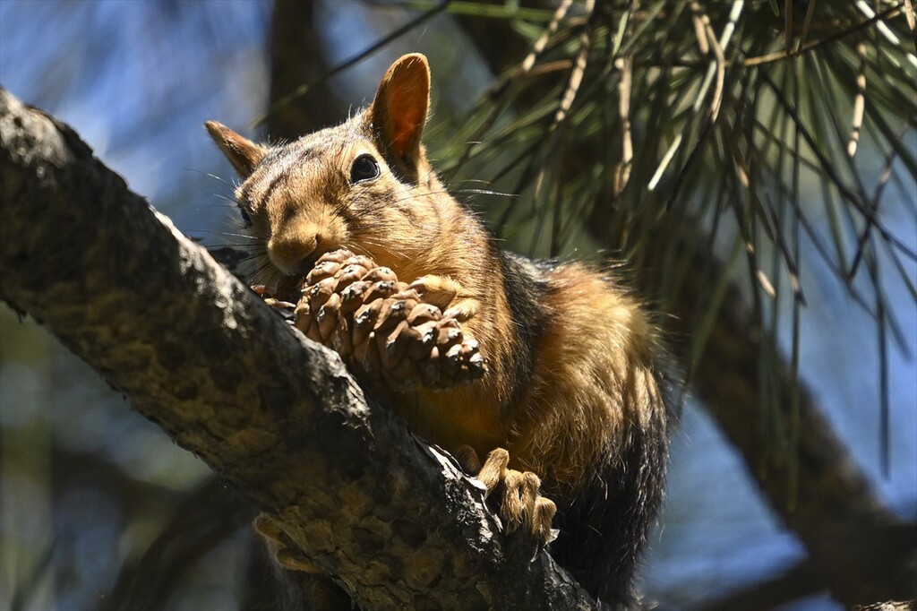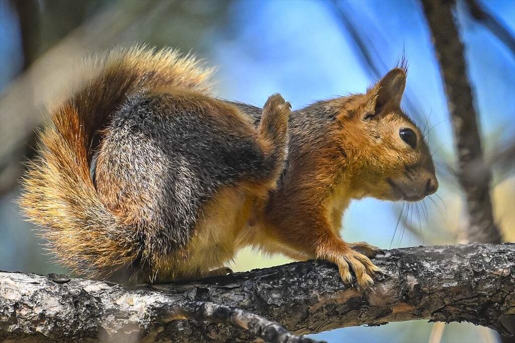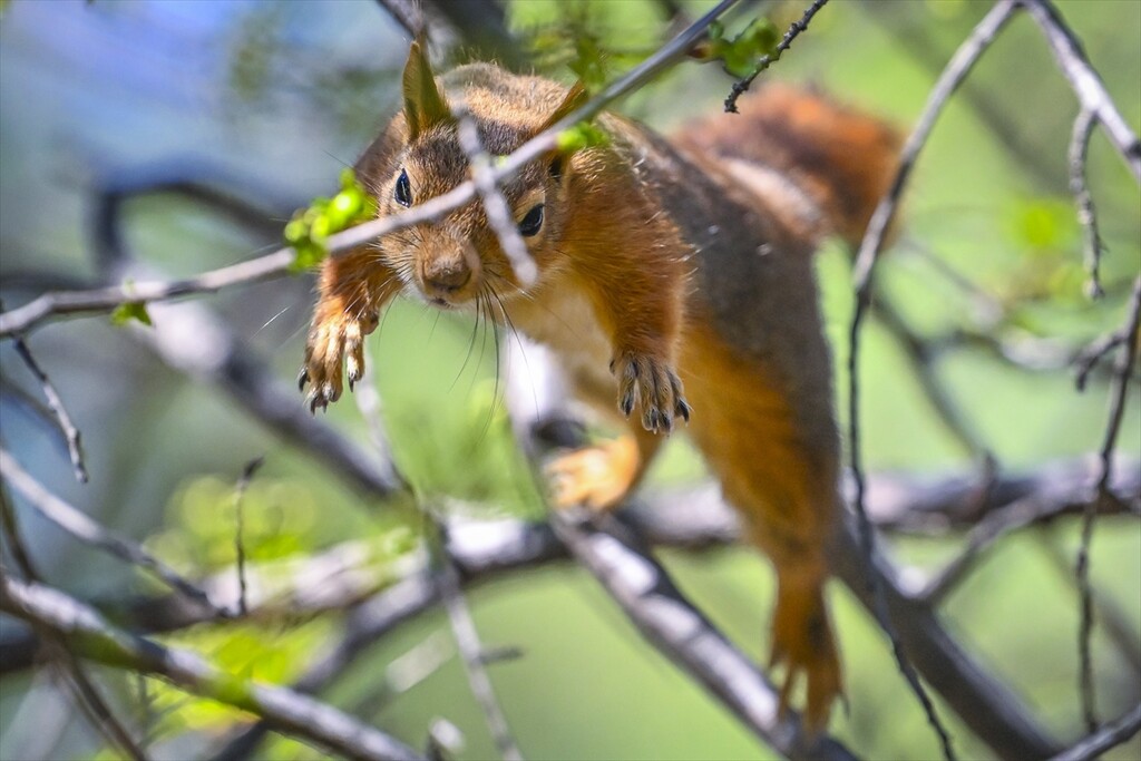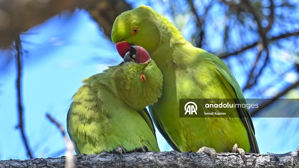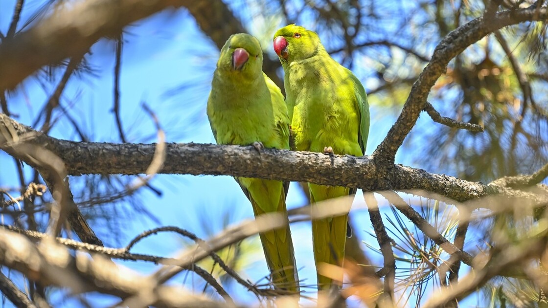 Ankara’nın Çankaya ilçesindeki Seğmenler Parkı’nda, yeşil papağan, ev serçesi, saka kuşu ve sığırcık gibi farklı kuş türleri ve sincaplar havaların ısınmasıyla birlikte yuvalarından çıkarak parkta ve ağaç dallarında yiyecek arayışına girdi.
