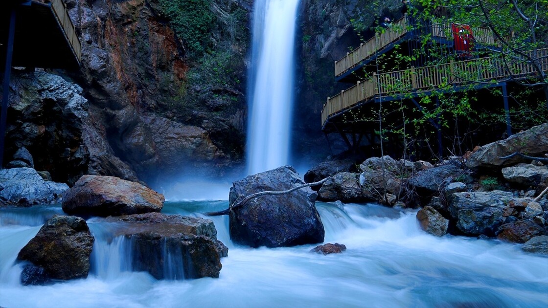 Osmaniye'de son aylarda etkili olan yağışlar Karaçay Şelalesi'nin debisini artırdı.