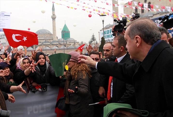 ''Bizi ayırmak isteyenlere, bölmek isteyenlere asla kulak asmayalım. Çünkü bizim bu ülkede yapacağımız daha çok iş var. Yapacağımız daha çok şeyler var. Bizi kıskananlar var. Onların oyununa gelmeyelim. İnanıyorum ki bu oyunu bozacağız. Bu güzel gidişimizi, bu birlik beraberlik içindeki gidişimizi kıskananlara en güzel cevabı sizler birlik, beraberlik içinde bugüne kadar hep sandıklarda verdiniz. İnanıyorum ki bundan sonra da vereceksiniz. Bu millete, bu ülkeye, Konya'ya, Konya gibi şehirlerimize yeni bedeller ödetilmesine, yeni faturalar yüklenmesine asla müsaade etmeyeceğiz. Özellikle kardeşliğimizi hedef almak suretiyle yapılan saldırıları, girişimleri, kirli senaryoları biz yine kardeşliğimizle dayanışmamızla bertaraf edeceğiz. Güneydoğumuzda, Doğumuzda bizleri Türküyle, Kürdüyle, Lazıyla, Çerkeziyle, Gürcüsüyle, Romanıyla, Arnavutuyla, Boşnakıyla birbirine düşürmek isteyenlere asla prim vermeyeceğiz.''