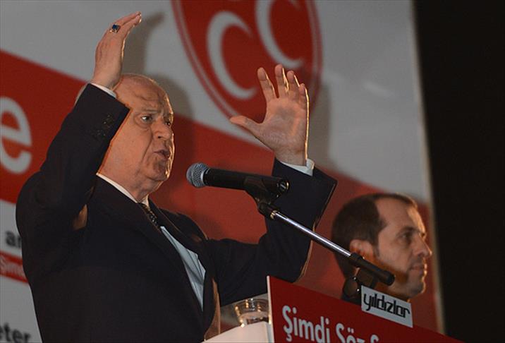Bahçeli, partilerin her birinin milletin "aziz evlatları" tarafından kurulduğunu dile getirerek, "Bu kuruluşlardan birisi de Milliyetçi Hareket Partisi'dir. Milliyetçi Hareket Partisi, gelenekli siyasi kurum olarak ilkeli, dürüst bir siyaset temelinde temiz siyaset, temiz toplum, temiz yönetim amaçlı ve milletimizin içinden çıkmış bir siyasi kuruluşumuzdur. Milliyetçi Hareket Partisi, seçimlere katılmakta değerli adaylarını çok önceden toplumla buluşturdu" diye konuştu.