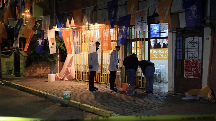 İstanbul'da AK Parti seçim irtibat bürosuna önce molotofkokteylli daha sonra ses bombası atıldı.