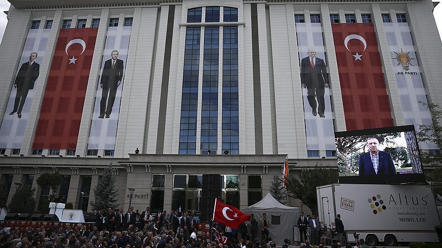 AK Parti'nin 15. kuruluş yıl dönümünde parti genel merkezi önünde geniş katılımlı sade bir program düzenlendi.