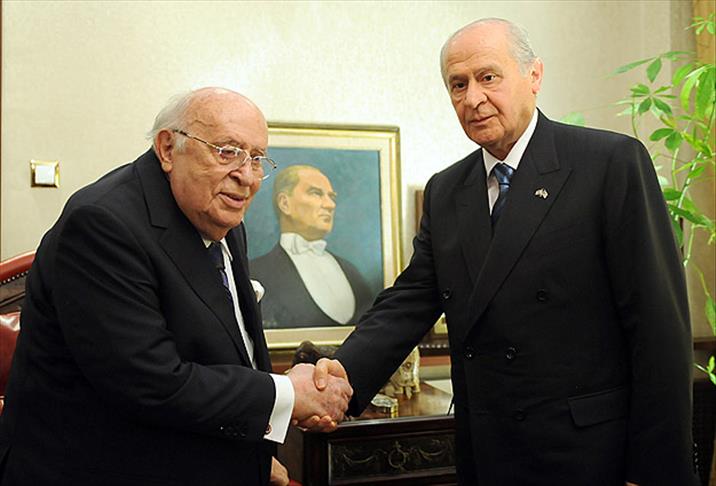 "Nasıl gelişeceği konusunda da çok yönlü tartışmalar başlatılmıştır. Biz MHP olarak tartışmaların derinliğine girmek yerine acaba siyaseten cumhurbaşkanlığı seçimini bir kaosa dönüştürmeden, bir siyasi krizin eşiğine getirmeden nasıl bir yol izleyebiliriz düşüncesinden hareketle bir çatı aday formülü üzerinde görüşlerimizi kamuoyuyla paylaşmaya gayret göstermekteyiz. Bununla ilgili olarak da zaatıalinizi ziyaret edip, yüksek tecrübelerinizden de yararlanmak istiyoruz. Gelişimizin ana sebebi budur."
