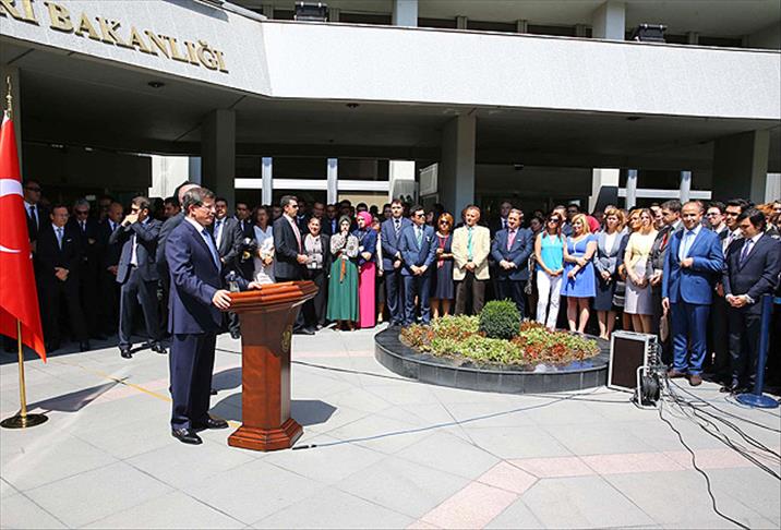 Davutoğlu, Dışişleri Bakanlığı bahçesinde bakanlık personeline hitaben veda konuşması yaptı.