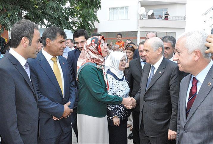 Nevşehir'in Kozaklı Belediye Başkanı Celalettin Güven'i ziyaret eden Bahçeli, belediye önünde yaptığı konuşmada, Başbakan Recep Tayyip Erdoğan'ın da aralarında olduğu üç adaylı seçim dönemine girildiğini söyledi.